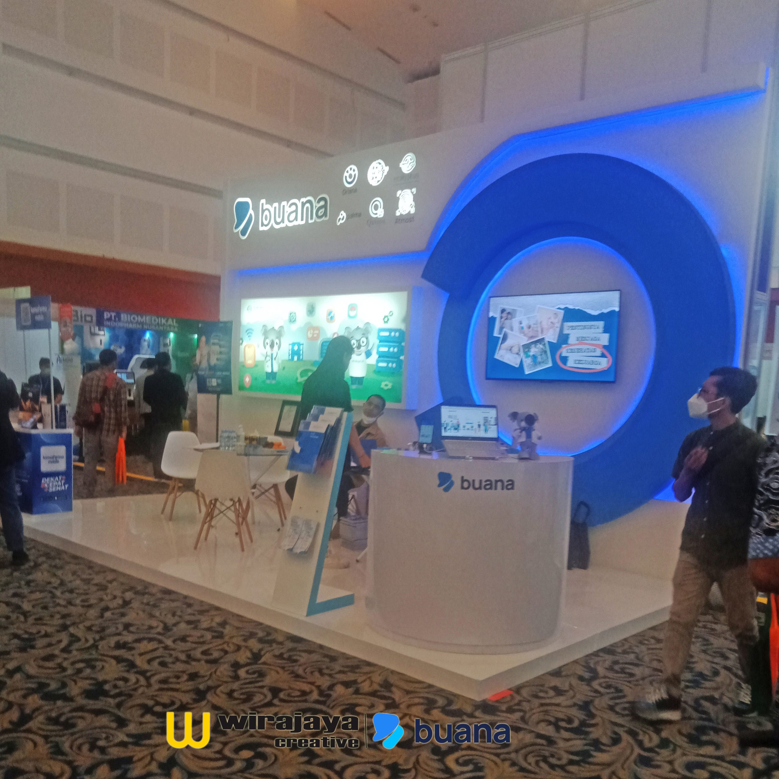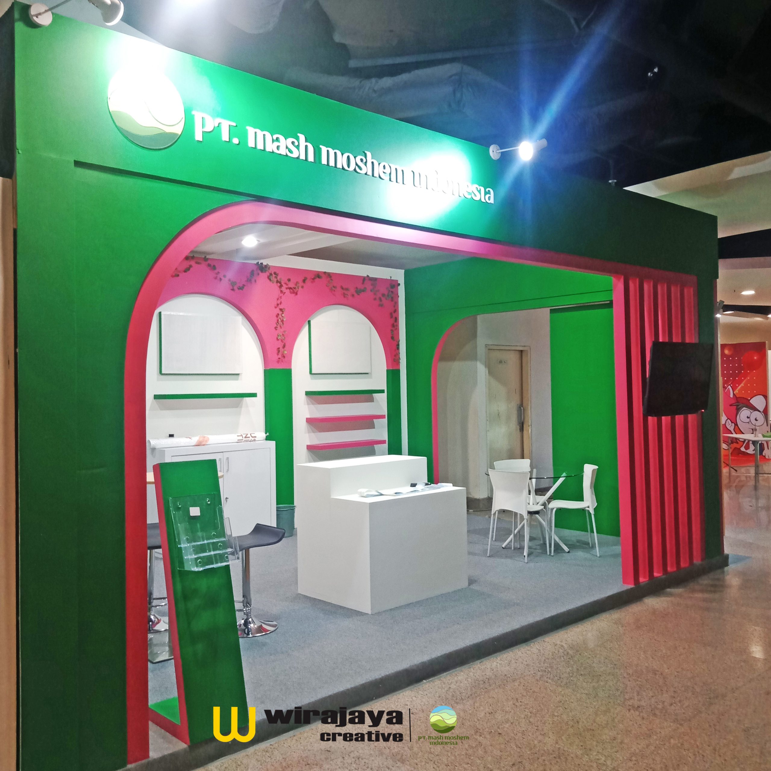 Dekorasi special design booth exhibition dari design perencanaan hingga pesmasangan booth di lokasi pameran.